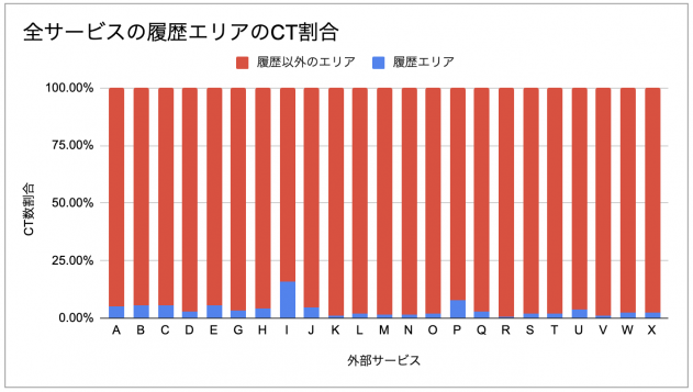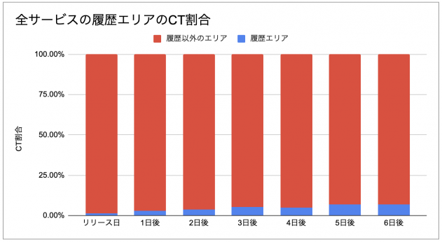 - リリース後の各サービスのCT数の内、履歴エリアのCT数の割合を確認する