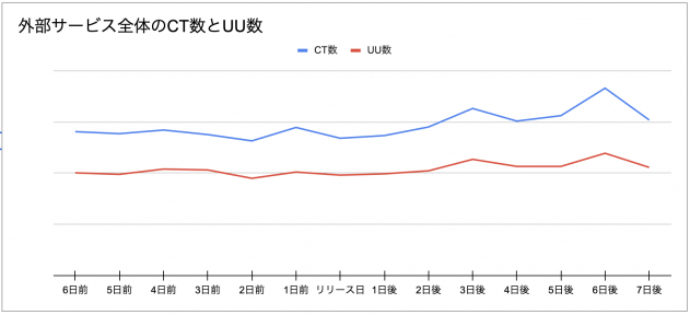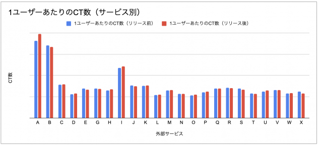 - リリース前後の各サービスのCT数・1人あたりのCT数を比較する